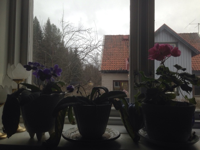 Den här människan som får vissa saker gjorda och andra inte. Det här med blommor är sånt som inte blir gjort. Men plötsligt händer det också. Jag har planterat om blommorna. Och de blev glada och tackar genom att blomma. Pelargonen blommar, en sort som jag inte minns vad den heter delade jag och båda delarna har blommat och blommor och den tredje sorten med vita gulliga blommar blev också glad över omplanteringen. Den har såna där blad som liksom sover när det är mörkt och vaknar när det är ljust.